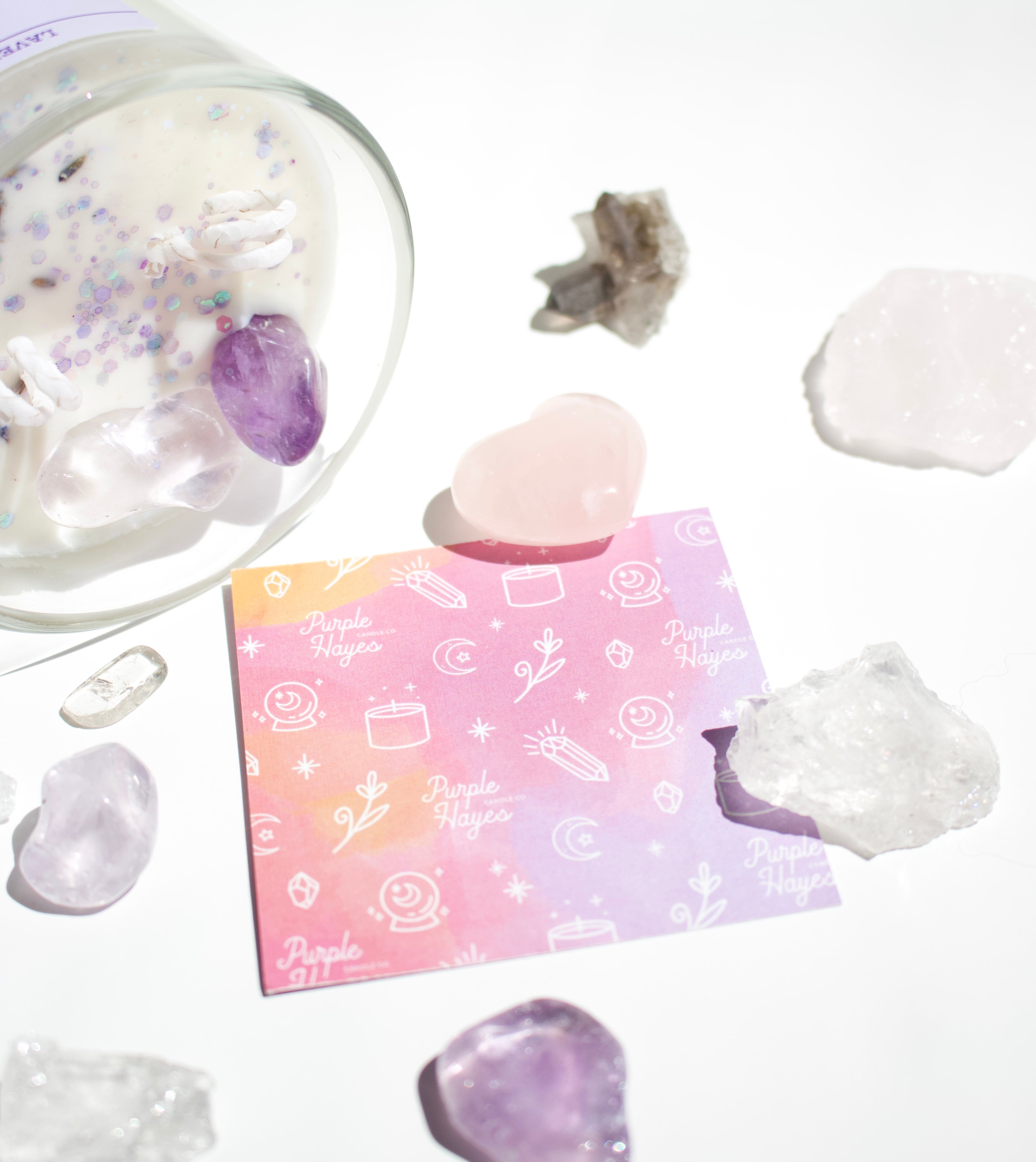 Each crystal we infuse into our candles is natural, high-quality and ethically sourced. We hand-pick them to ensure high quality.